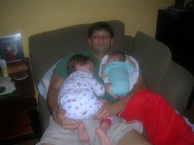 Wednesday, September 17 - Charlie's first cuddle with Henry. When he first saw his baby brother, he yelled with excitment, "He came out!"